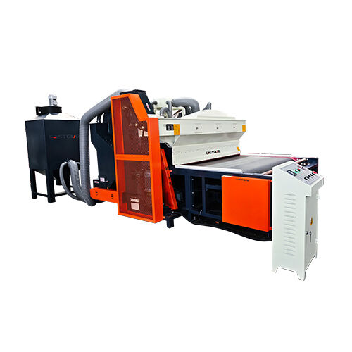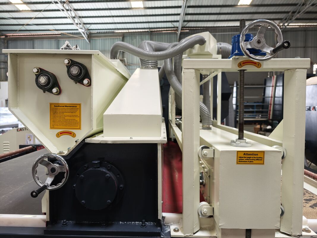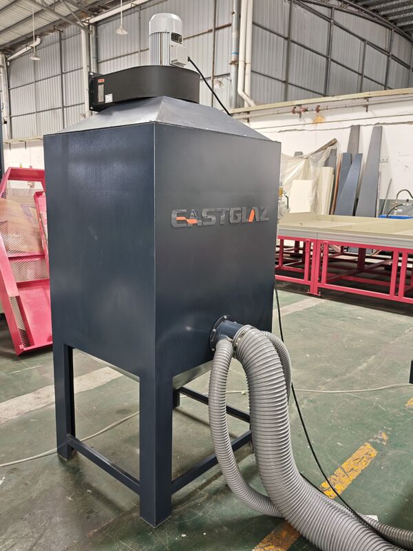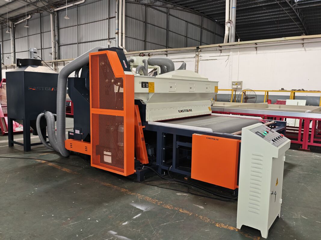 Full-automatic glass sandblasting machine contains of dust collecting--sand sweeping--transportation--grit feeding--sandblasting--sound attenuation--grit filtration--grit equalization--grit storage--shakeoutSetiap bagian proses produksi diselesaikan secara otomatis. lingkungan kerja yang lebih baik dan mengurangi intensitas tenaga kerja.mesin telah diterima dan dipilih oleh mayoritas pelangganMesin ini cocok untuk mengisap permukaan kaca, akrilik, batu, keramik, logam dan bahan lainnya.